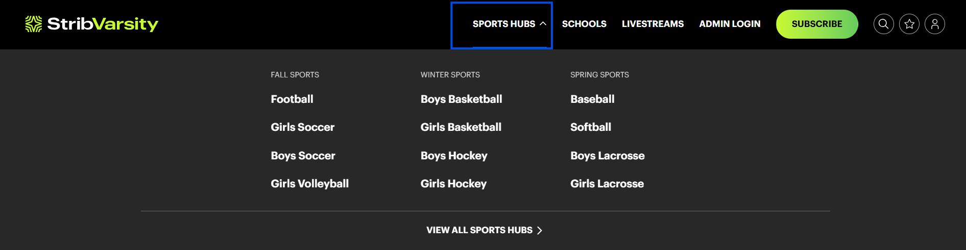 - On the homepage, click the ‘Sports Hubs’ tab in the top navigation bar